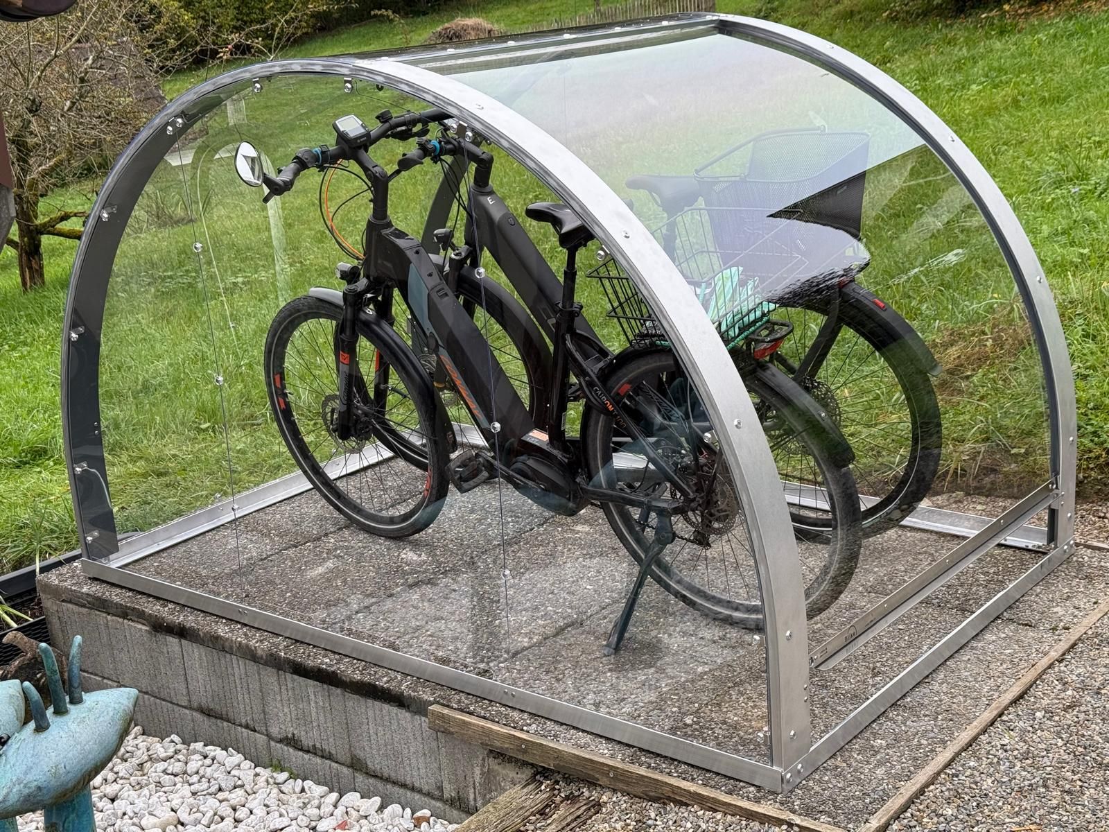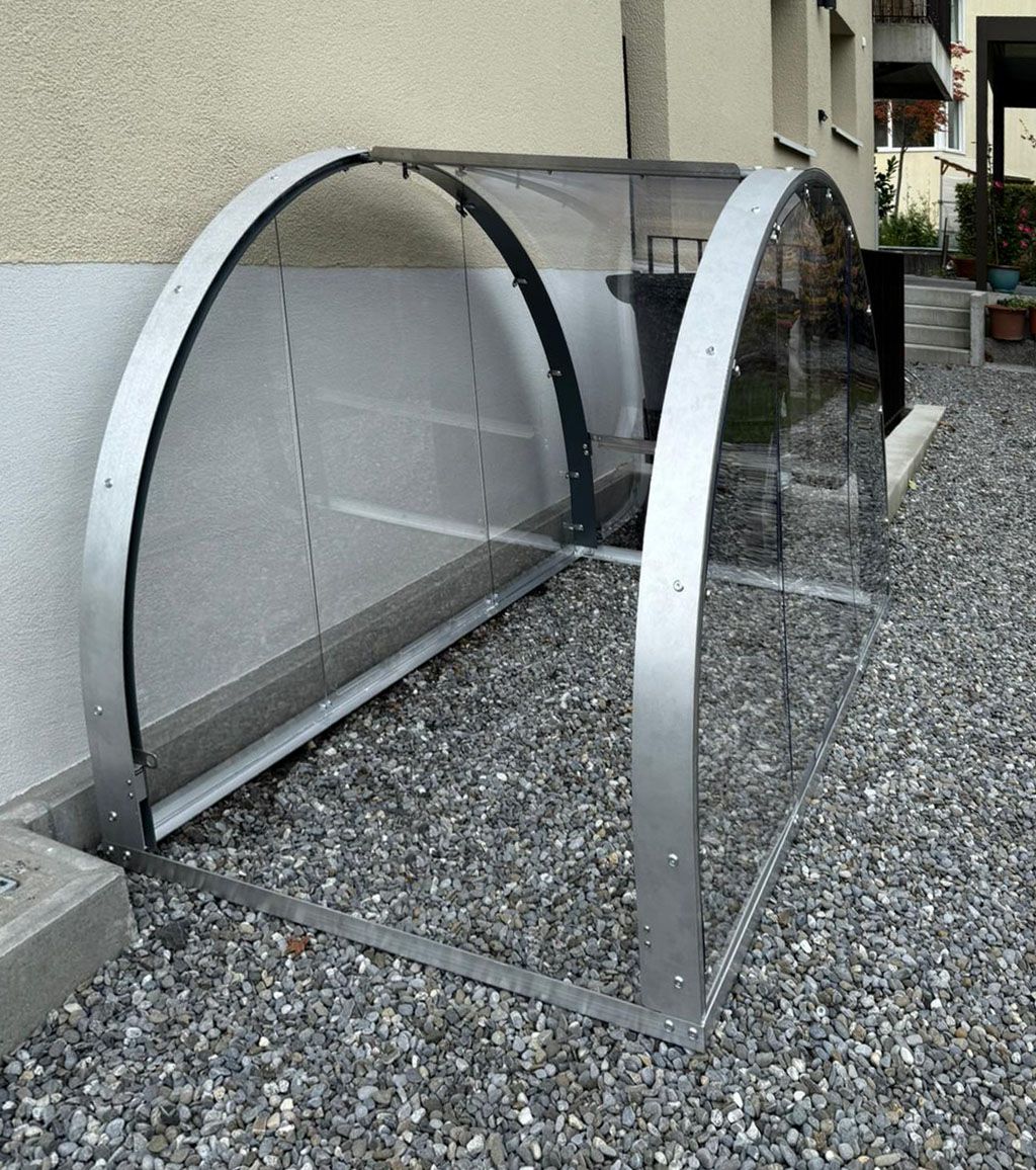 Das Velodach Blike und die Blike.Box gibt es seit vielen Jahren. Einige hundert Blike's sind im Einsatz und schützen die Velos.