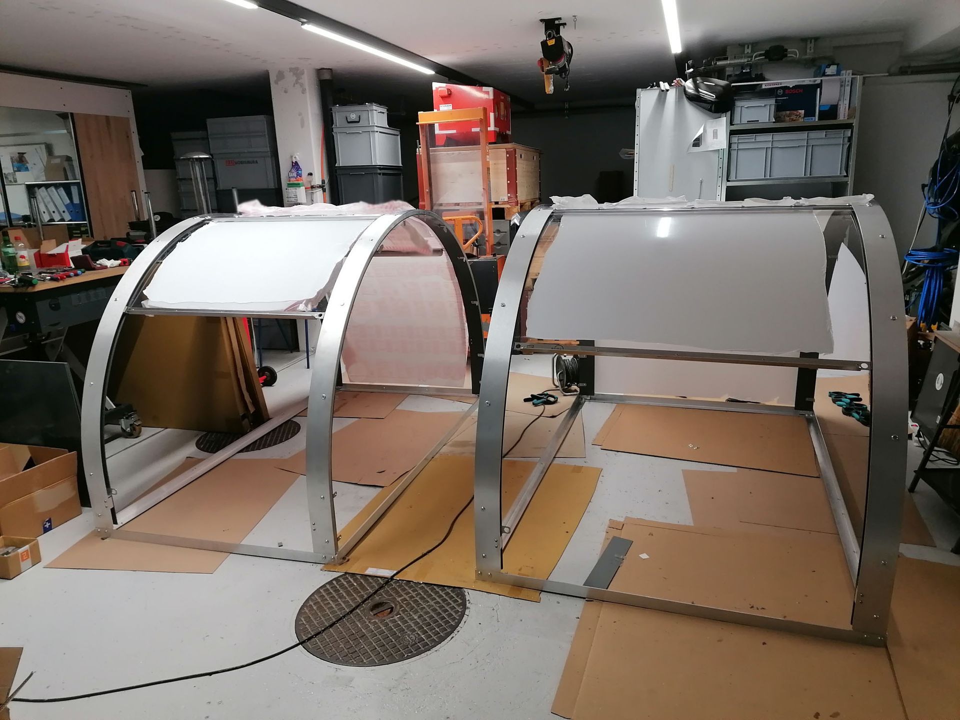 Die Produktion erfolgt in Zusammenarbeit mit der Firma REGET. Vormontag in der Werkstatt. Eine Velobox Blike.120.P und eine Velobox Blike.140.P