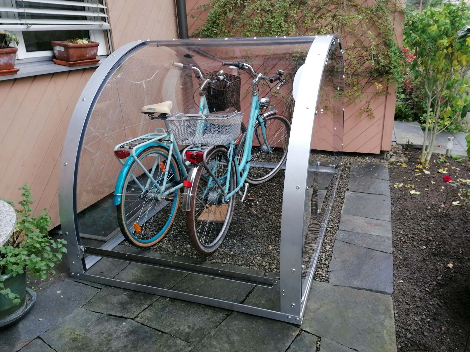 Die Velobox Blike passt sich Ihren Bedürfnissen an. Zwei Standardgrössen können beliebig kombiniert werden. So dass Ihre und alle Fahrräder Ihrer Liebsten darin Platz finden.